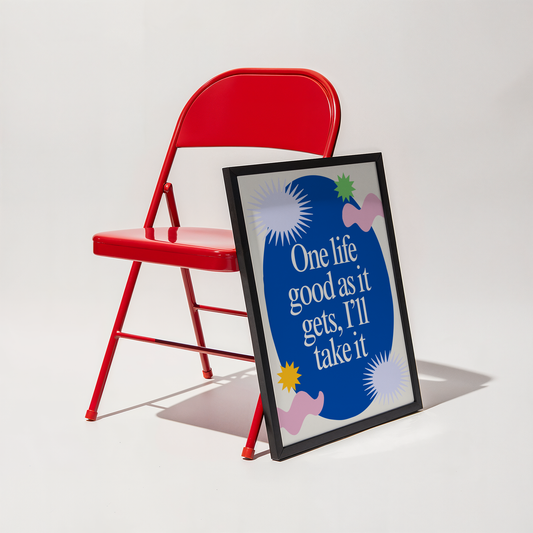 One Life, Good as It Gets – I’ll Take It" Confidence Man Lyric Poster | Bold Festival Wall Art | Retro Rave Print for Music Lovers