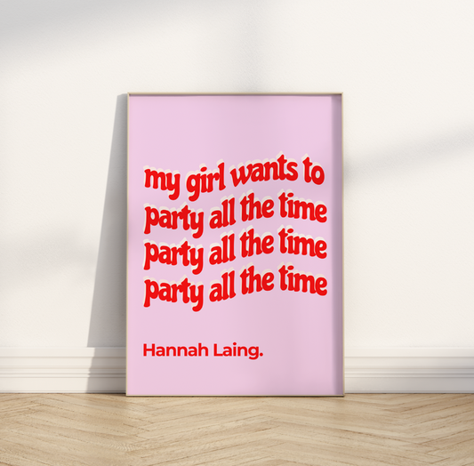Party All The Time Print (Pink & Red) ❤️🔥 Inspired by Hannah Laing Remix